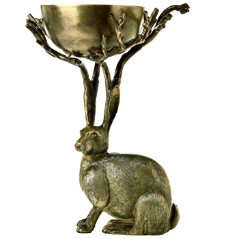 This jackalope bowl was designed to steal the show. Perfect for flowers, for fruit, or for a pile of books. Cast aluminum with gold finish. The Jackalope Bowl Measures 21” x 12” x 21.5”. This item is part of the Eric and Eloise Collection, inspired by the beloved storybook written by Jessica Hiemstra.