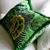 Fully embroidered bold scale striking renderings of roses with geometric leaves and foliage. In rich jade and moss tones, reverses to a delicate mirrored pattern digitally printed onto cotton. Luxurious brush trim in green on all four sides. Down Insert.